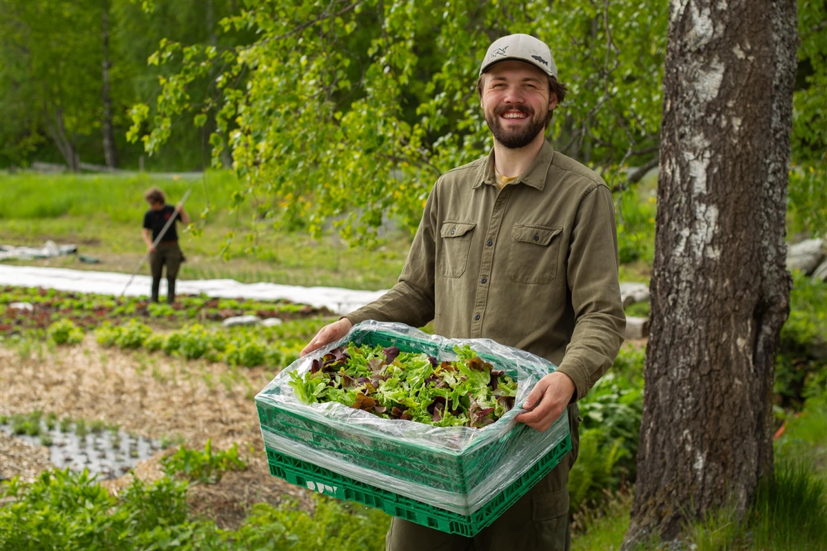 Annenhver torsdag kommer bønder med sine leveranser til Sluppen. Du leger inn sin bestilling i nettbutikken senest dagen i forveien, og plukker den opp til oppsatt leveringstid.